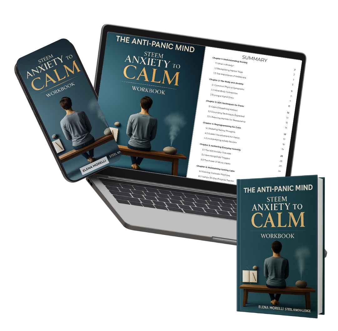 Get the Anti-Panic Mind ebook + FREE practical workbook with Calm-3 Breathing, grounding, mantras, and a 30-day tracker.